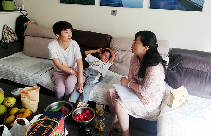 因?yàn)楣ぷ髑闆r特殊,同樣通過(guò)微信視頻接受家訪的,還有直管部工會(huì)主席普俊寓的丈夫邵震波。當(dāng)直管部經(jīng)理蔣仁和接通視頻時(shí),電話那頭傳來(lái)的聲音讓人勉強(qiáng)能聽(tīng)清:“我這邊..信號(hào)..不..太..好..”在斷斷續(xù)續(xù)的畫面中,微信視頻自動(dòng)掛斷,幾分鐘后,蔣仁和接到了邵震波回打過(guò)來(lái)的視頻電話。“不好意思呀,我在外地出差,這邊信號(hào)不太好?!薄皼](méi)事!這次視頻家訪,主要是想了解一下普俊寓上班八小時(shí)以外的活動(dòng)內(nèi)容?!痹诹私馍壅鸩üぷ髋c生活近況后,蔣仁和說(shuō)到?!耙话氵€是在家照顧孩子,因?yàn)槲医?jīng)常出差嘛,孩子還是她照顧的多。周末的話除了開(kāi)會(huì)和出差,她有時(shí)會(huì)帶父母和孩子出去玩。”邵震波微笑答道。視頻結(jié)束后,他還要趕往另一座城市,繼續(xù)他的出差之旅。