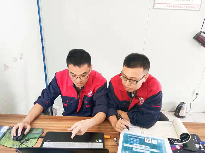 回憶起師徒倆第一次見面,恰好是袁野到工地報(bào)道的那天,他背著一個(gè)大包,拖著半人高的行李箱,從昆明輾轉(zhuǎn)到鎮(zhèn)雄,一路上風(fēng)塵仆仆,十分疲憊??粗菔菪⌒⊥现欣钕涞纳碛?,張銳對他印象很深,“工地上哪里經(jīng)得起這么折騰,向來都是輕裝簡行”,張銳事后經(jīng)常拿這件事調(diào)侃他,雖是玩笑話,但其實(shí)也藏著他對徒弟的關(guān)心與心疼。