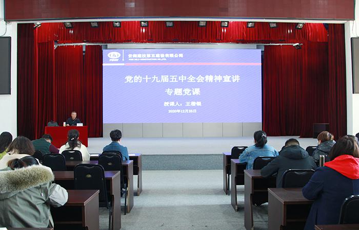 12月25日下午,公司黨委副書記、董事長王楷銀在公司禮堂講授黨的十九屆五中全會精神專題黨課,公司機(jī)關(guān)員工及聯(lián)系黨支部黨員代表共計(jì)137人參加學(xué)習(xí)。
