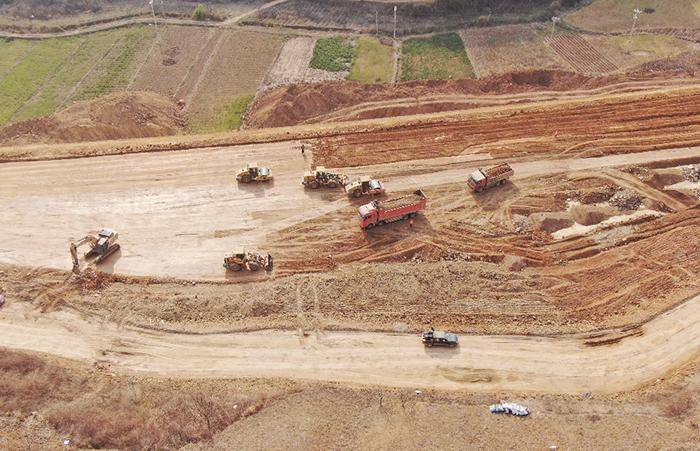 施鏈高速二分部大干春季的施工熱潮未退,各個工作面全面開展,機(jī)械設(shè)備此起彼伏的的轟鳴聲、車水馬龍的運(yùn)輸車輛穿梭在填方區(qū),本項目部路基挖方有83.7萬方,填方106.5萬方,目前路基土石方工程施工正常,為加快填方路基施工進(jìn)度,現(xiàn)場現(xiàn)有45輛渣土車運(yùn)料,保證填方路基有充足填料,同時要求路基班組夜間加班施工,當(dāng)天的填料必須平整碾壓完成,防止夜間下雨及次日無場地堆放填料,從而保證路基填筑施工進(jìn)度。