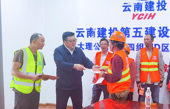 9月30日,公司黨委書記、副董事長蔣璽赴大理公館三期(四組團)項目開展調研,并對項目部管理人員、一線工人致以節(jié)日問候。公司總經(jīng)理助理趙麟陪同調研。