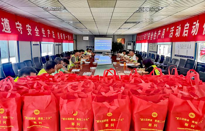 炎炎夏日送清涼,絲絲關愛入心田。8月10日,公司工會主席冷蕊帶隊深入永金高速新平(戛灑)至元江(紅光)段一分部、彌勒至玉溪高速公路勘察試驗段象山段項目開展2022年“夏日送清涼 喜迎二十大”慰問活動。
