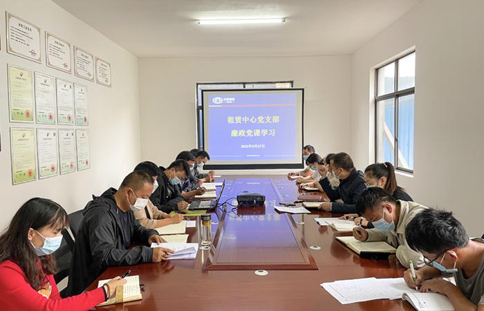 9月27日,租賃中心開展節(jié)前廉政黨課教育,由黨支部書記授課,班子成員、項(xiàng)目經(jīng)理、科室負(fù)責(zé)人、二線管理人員共18人參會(huì)。