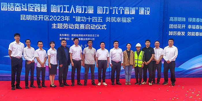 啟動儀式上,通泰公司黨支部書記、工會主席安黔宣貫了勞動競賽方案,詳細(xì)介紹了競賽目標(biāo)、競賽內(nèi)容、競賽機(jī)制。通泰公司執(zhí)行董事、總經(jīng)理胡錫波致辭。在熱烈的氛圍中,經(jīng)開區(qū)管委會四級調(diào)研員呂廣年宣布昆明經(jīng)開區(qū)2023年“建功十四五 共筑幸福家”主題勞動競賽”正式啟動。