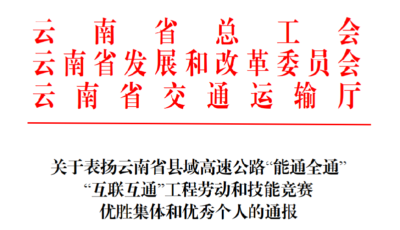 近日,云南省總工會(huì)、云南省發(fā)展和改革委員會(huì)、云南省交通運(yùn)輸廳聯(lián)合下發(fā)通報(bào),公布了云南省縣域高速公路“能通全通”“互聯(lián)互通”工程勞動(dòng)和技能競(jìng)賽中優(yōu)勝集體、優(yōu)秀個(gè)人獲獎(jiǎng)名單。其中,公司路橋五部黨支部書記楊澤軍、賓鶴高速土建八工區(qū)項(xiàng)目經(jīng)理馬海周兩名干部職工獲評(píng)云南省縣域高速公路“能通全通”“互聯(lián)互通”工程勞動(dòng)和技能競(jìng)賽“優(yōu)秀個(gè)人”榮譽(yù)稱號(hào)。