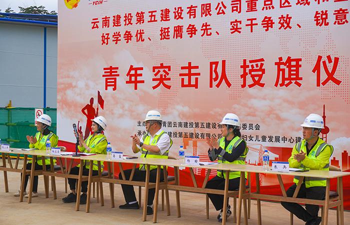 9月27日上午,公司在云南婦女兒童發(fā)展中心建設(shè)項(xiàng)目舉行重點(diǎn)區(qū)域和重點(diǎn)項(xiàng)目“好學(xué)爭優(yōu)、挺膺爭先、實(shí)干爭效、銳意爭新”青年突擊隊(duì)授旗儀式,集團(tuán)團(tuán)委書記、本部工會主席楊瑜,公司黨委書記、副董事長蔣璽出席授旗儀式并講話。