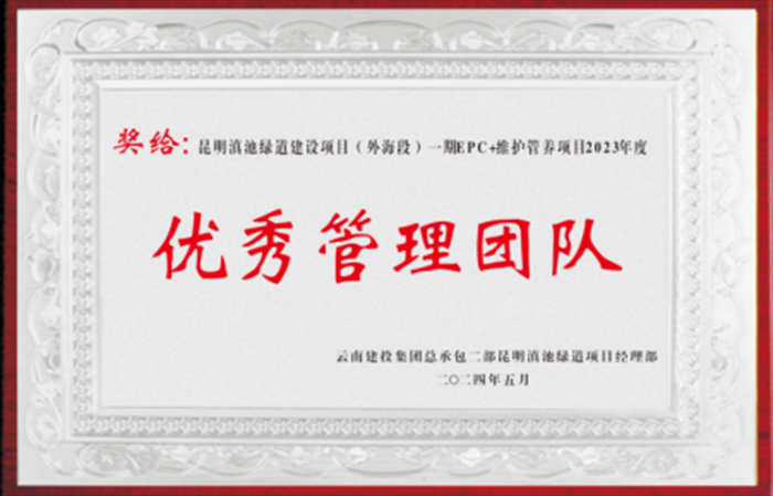近日,昆明滇池綠道建設項目指揮部召開2023年度優(yōu)秀個人、優(yōu)秀團體表彰會。昆明滇池綠道建設項目(外海段)一期EPC+維護管養(yǎng)土建七工區(qū)榮獲“優(yōu)秀管理團隊”榮譽,項目經(jīng)理謝國飛榮獲“優(yōu)秀項目經(jīng)理”稱號,項目資料員劉麗榮獲“優(yōu)秀個人”稱號。