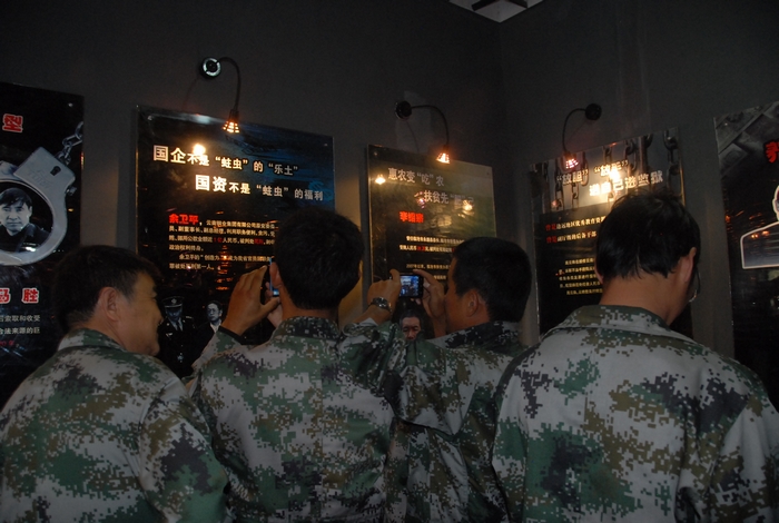 參觀人員在現(xiàn)場工作人員的解說下,先后參觀了警示廳和陽光廳,了解了省內(nèi)一些領(lǐng)導(dǎo)干部因貪污受賄而接受法律制裁的案例,學(xué)習(xí)了楚雄州在黨風(fēng)廉政教育方面采取的措施和成效,隨后觀看了警示教育片《高強悲歌》。吳倩強調(diào),對基層管理人員進行廉潔教育,一方面警示大家要自覺抵制金錢的誘惑,另一方面要求大家要行使好監(jiān)督權(quán),真正讓領(lǐng)導(dǎo)干部在陽光下管理、做事。