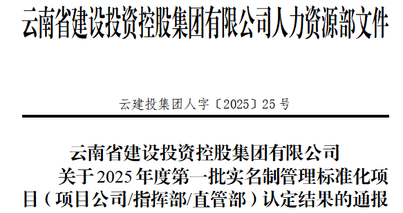 近日,集團通報了2025年度第一批建筑工人實名制管理標準化項目(項目公司/指揮部/直管部)認定結果,公司承建的5個項目成功通過集團實名制管理標準化項目認定,分別是第一直管部保山某項目、第二直管部云南農(nóng)業(yè)大學學生食堂(稷香園)建設項目、第七直管部五華區(qū)數(shù)字經(jīng)濟產(chǎn)業(yè)園西北新城園區(qū)項目、第八直管部文山職業(yè)技術學院產(chǎn)教融合實訓基地項目。自集團啟動建筑實名制管理標準化項目認定工作以來,公司以“六制一金一表”…